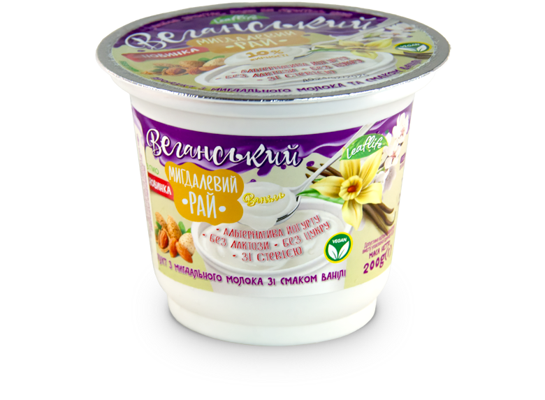 “Мигдалевий рай” — це натуральна альтернатива йогурту на основі мигдального молока, створена для тих, хто прагне поєднати корисність та насолоду. Продукт не містить лактози, цукру та є 100% веганським. Завдяки стевії, десерт має легкий солодкий смак, який гармонійно поєднується з витонченим ароматом ванілі.