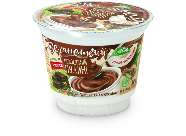 Веганський кокосовий пудинг  з  шоколадним смаком – натуральний десерт на основі кокосових вершків та чорного шоколаду. Поєднує ніжну текстуру, вишуканий смак і корисні інгредієнти. Без цукру, з натуральними загущувачами та ароматизаторами, ідеальний вибір для тих, хто цінує якісну продукцію та насолоду від її споживання.